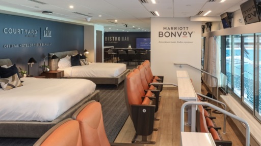 El patrocinador del hotel de la NFL, Courtyard by Marriott, está recuperando su activación en el estadio, que invita a los ganadores del concurso a dormir en una réplica de una suite Courtyard en el Hard Rock Stadium. La ganadora de este año es Denise Ammon, que puede invitar a tres amigos a dormir en la suite y despertarse dentro del estadio el domingo del Super Bowl. Courtyard se asoció con 160over90 para producir la activación.